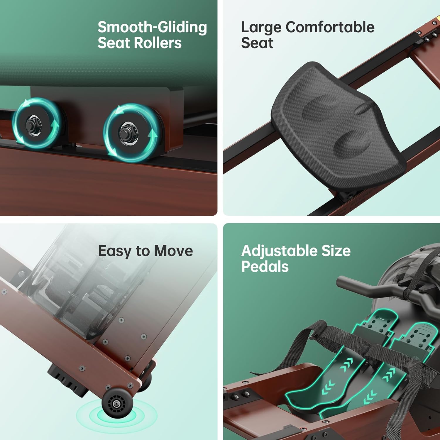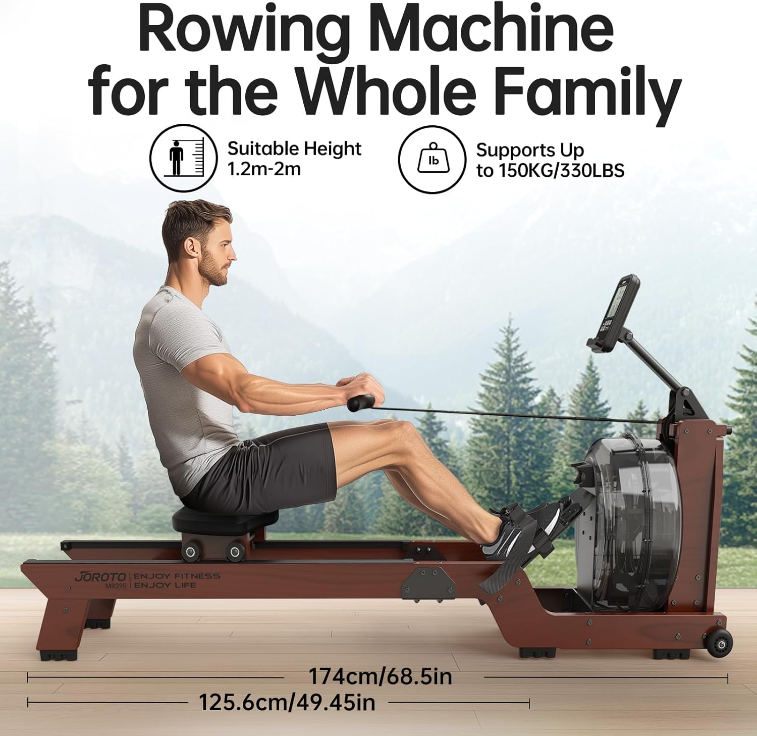 Erleben Sie das ultimative Rudererlebnis mit dem JOROTO MR380/MR390 Rudergerät. Gefertigt aus edlem Eichenholz, vereint dieses klappbare Rudergerät elegantes Design mit hoher Funktionalität. Der vergrößerte 28-Liter-Wassertank sorgt für einen realistischen Ruderschlag, während der Bluetooth-Monitor Ihre Trainingsdaten präzise erfasst. Mit einer Gewichtskapazität von 158 kg und einer praktischen Halterung für Telefon und Tablet ist dieses Rudergerät die perfekte Ergänzung für Ihr Home-Fitnessstudio.