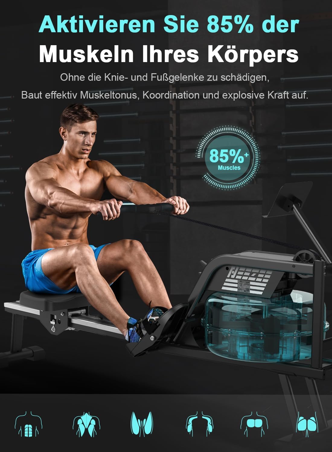 Erleben Sie ein intensives Ganzkörpertraining mit dem NEEZEE Wasserrudergerät. Das realistische Wasserwiderstandsgefühl ahmt das Rudern auf dem Wasser nach. Das Gerät verfügt über einen Bluetooth-Monitor zur Verfolgung Ihrer Fortschritte und eine Tablet-Halterung für Unterhaltung. Mit einer maximalen Belastbarkeit von 150 kg und den Transporträdern lässt sich das Rudergerät einfach verstauen.
