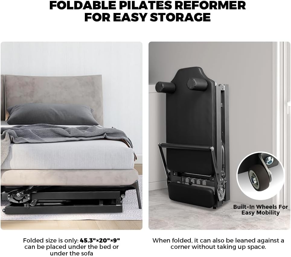 Mach dich bereit für ein effektives Ganzkörpertraining mit diesem klappbaren Pilates Reformer. Er ist perfekt für Frauen, die zu Hause Yoga und Krafttraining machen möchten. Der Reformer hilft dir, deine Körpermitte zu stärken und deine Flexibilität zu verbessern. Nach dem Training lässt er sich einfach zusammenklappen und verstauen.
